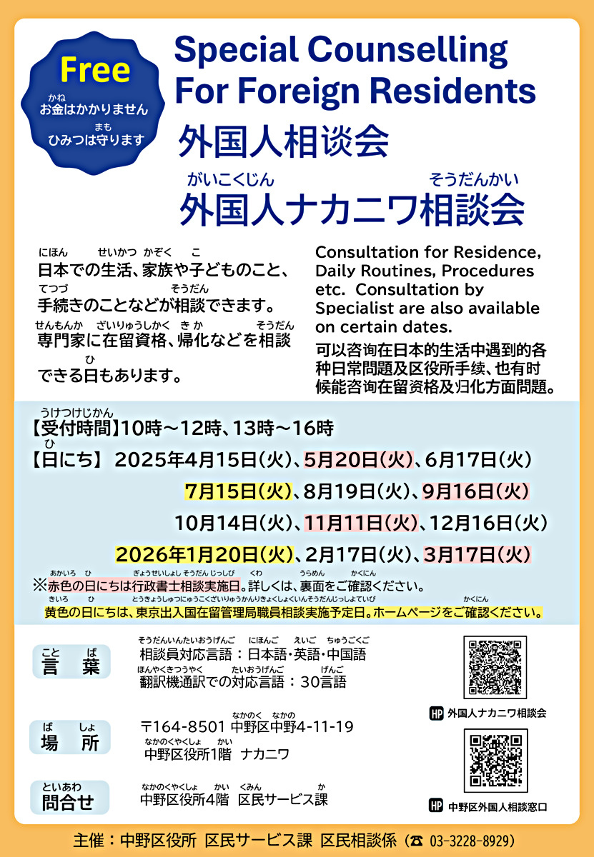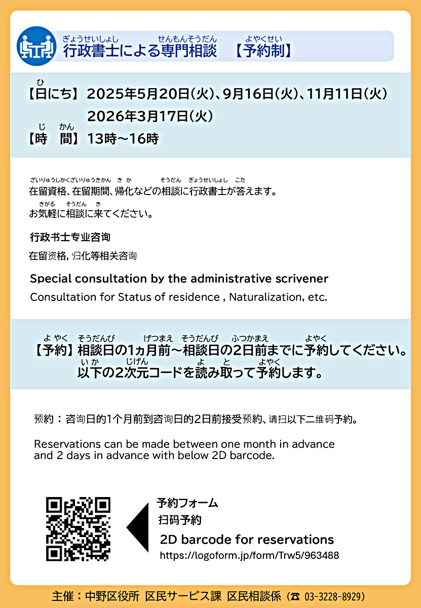 東京出入国在留管理局職員によるオンライン相談も同時に実施しています。(10時~12時)