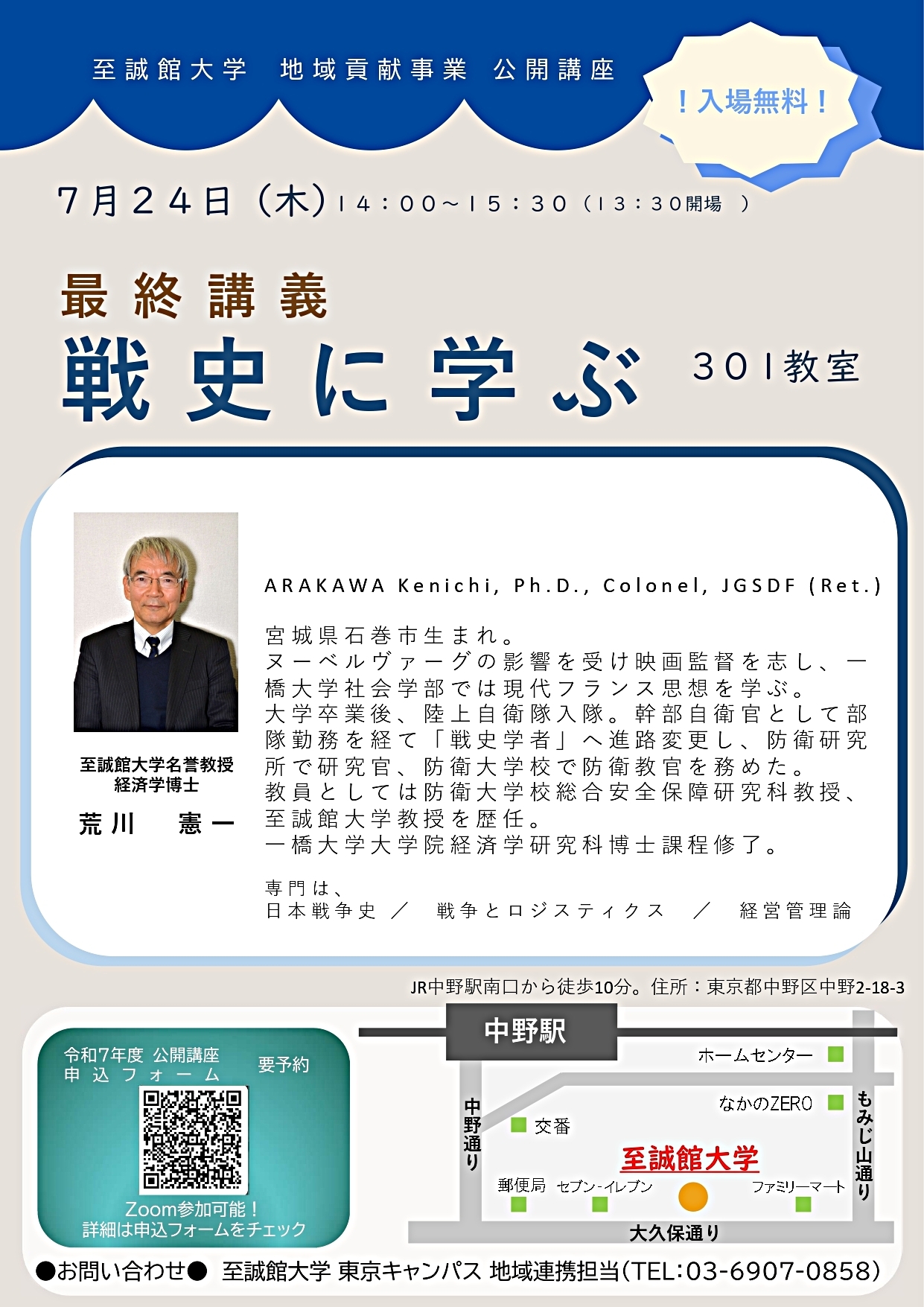 至誠館大学東京キャンパス公開講座「最終講義:戦史に学ぶ」 - ためまっぷなかの