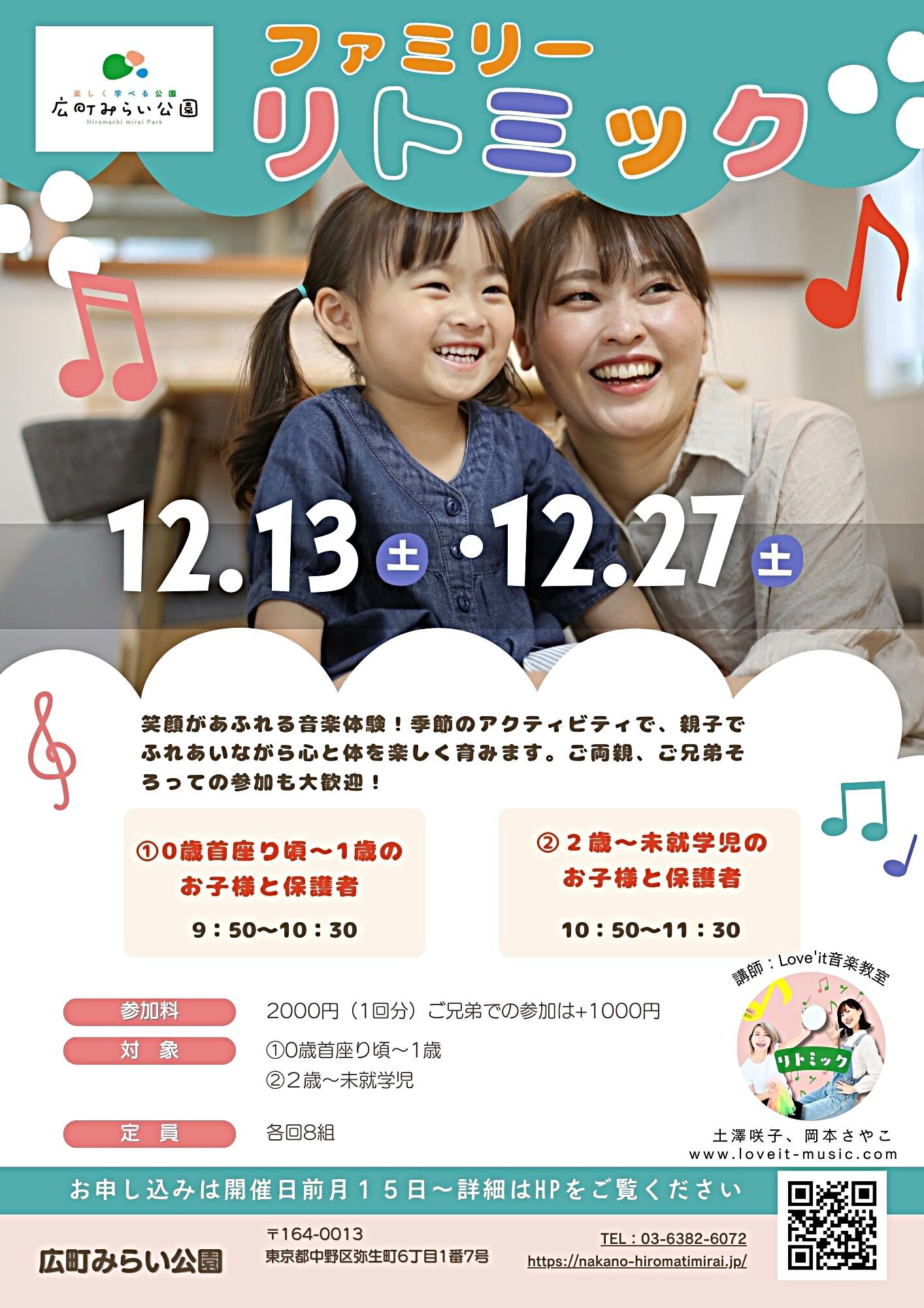 【ファミリーリトミック】笑顔があふれる音楽体験!季節のアクティビティで、親子でふれあいながら心と体を楽しく育みます。ご両親、ご兄弟そろっての参加も大歓迎! | イベント情報