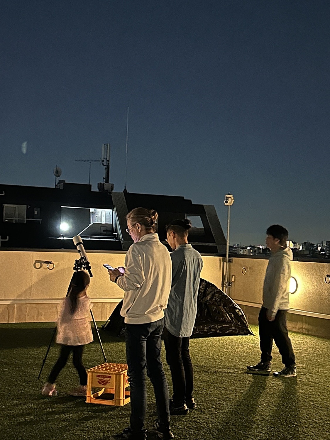 寒さに耐えられなかったら、夜中でも帰ることできる気軽さ。虫の苦手なスタッフも安心して寝られました。白い月を見て夕日を眺め、移動したヒカル月を見て、流れ星(発見できるかな)星ばっちり。