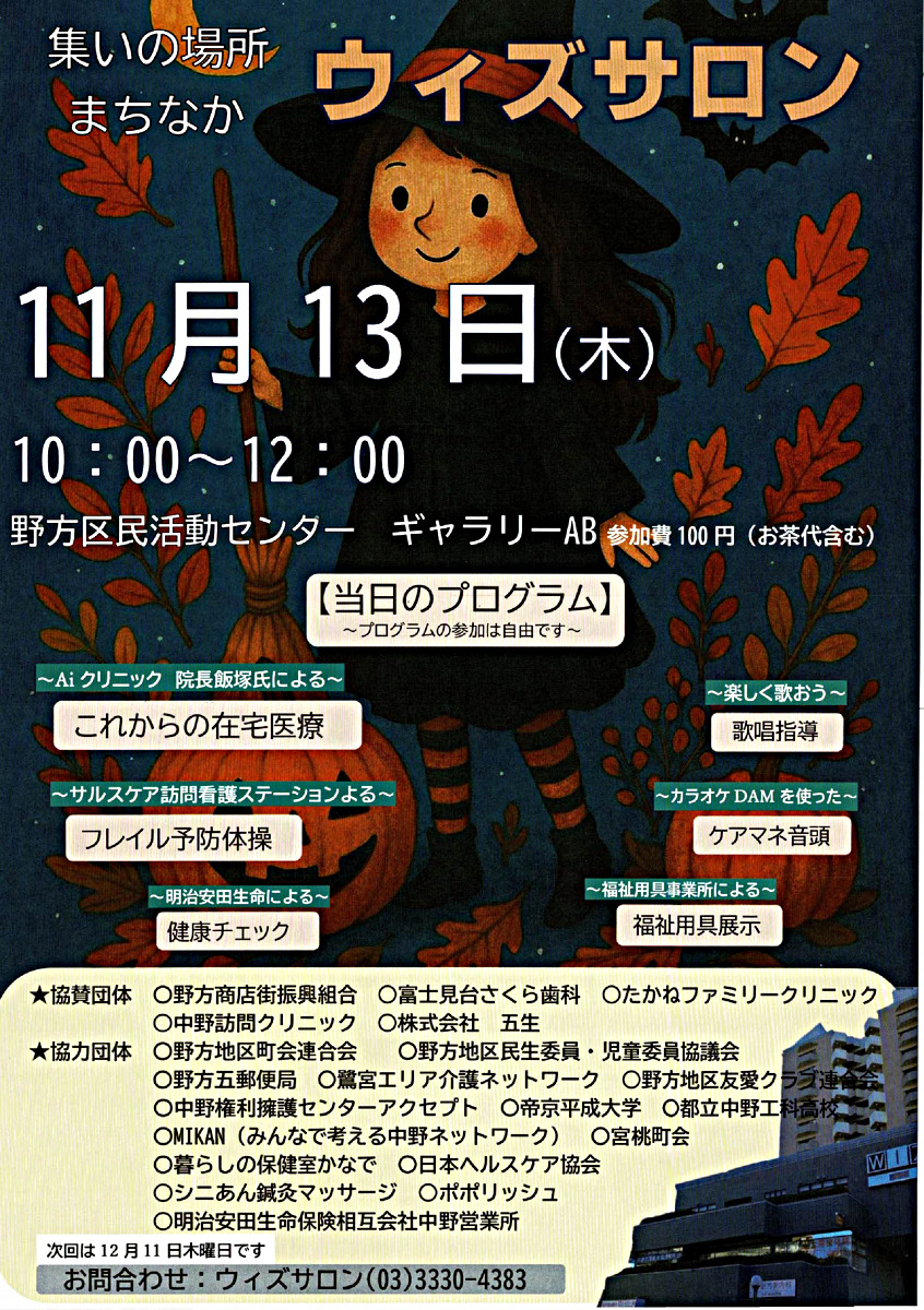 今回のプログラムは、『フレイル予防体操』の他、Aiクリニック飯塚院長先生による『これからの在宅医療』がございます。皆さまで楽しみながら健康になりましょう!