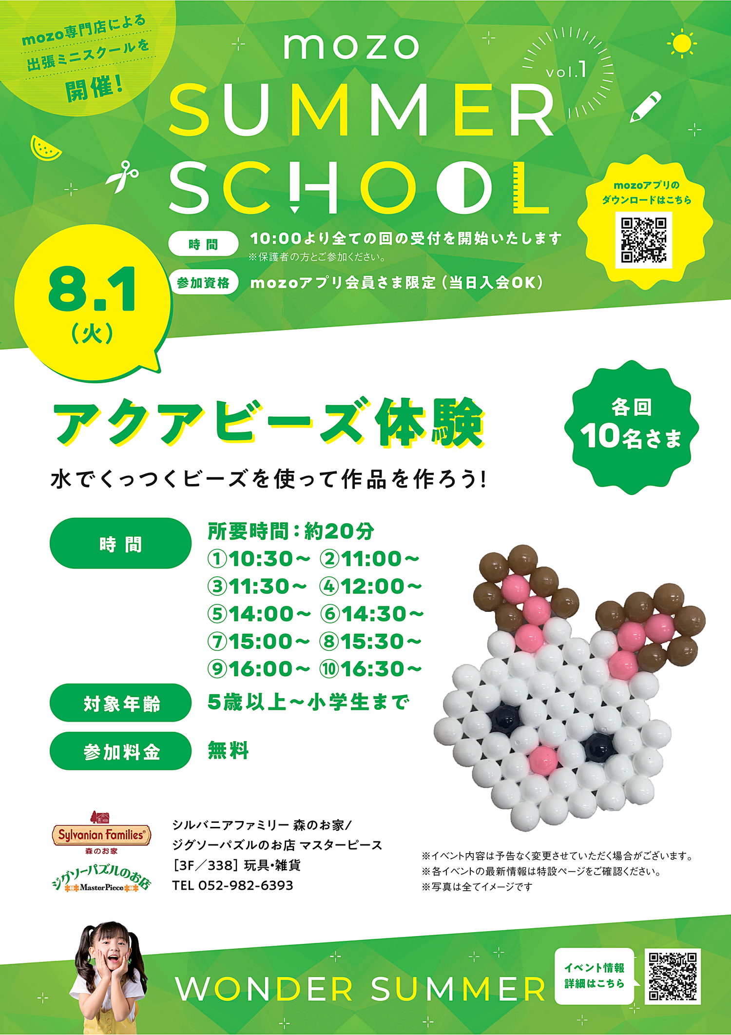 mozo SUMMER SCHOOL アクアビーズ体験 | イベント情報