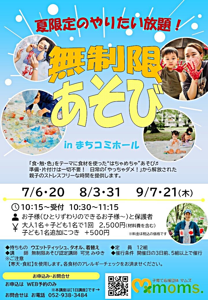 「食・触・色」をテーマに食材を使ったはちゃめちゃ遊び。準備・片付けは一切不要! 日常の「やっちゃダメ!」から解放された親子のストレスフリーな時間を提供します。