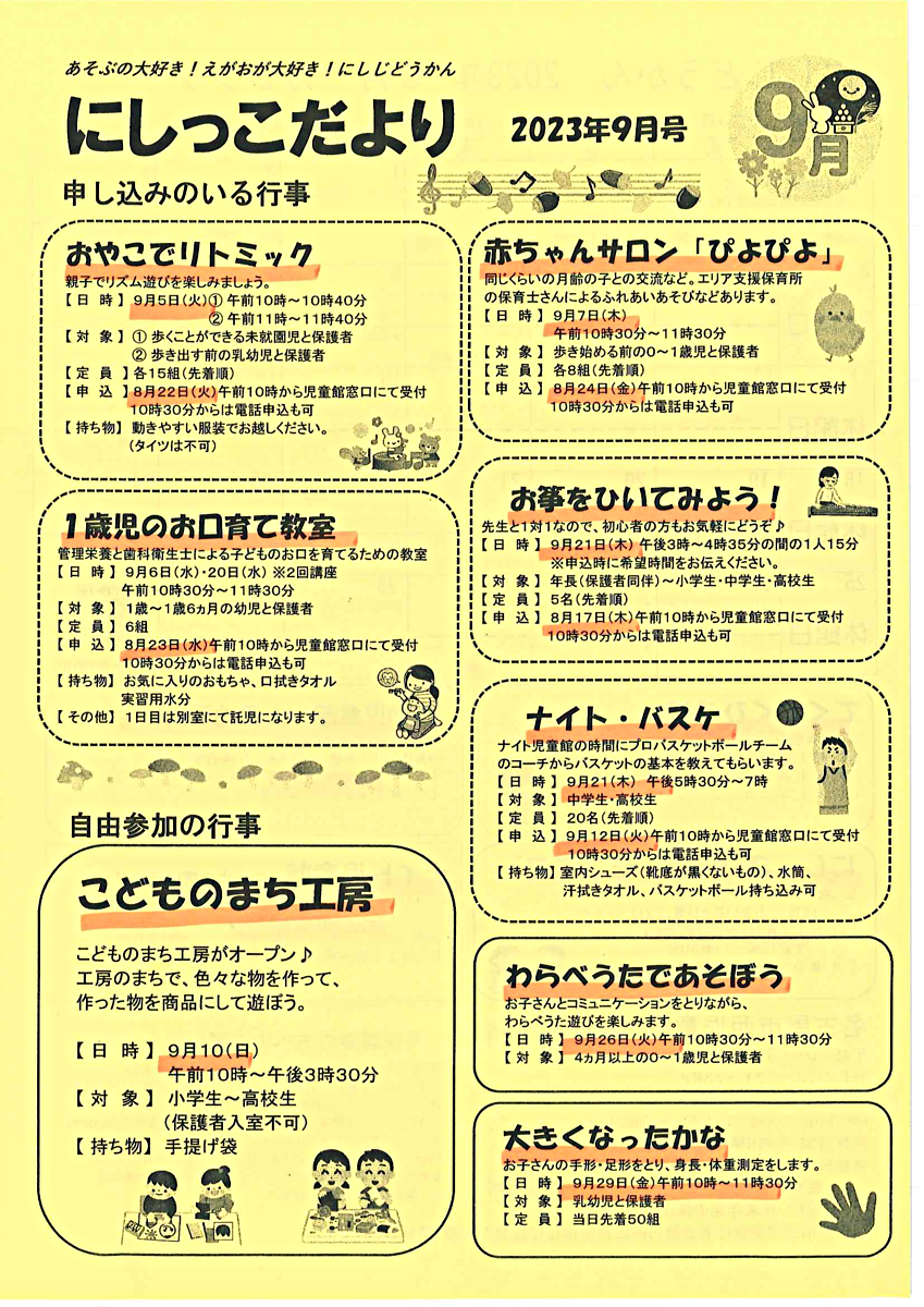 こどものまち工房がオープン♪ 工房のまちで、 色々な物を作って、 作った物を商品にして遊ぼう。 【日時】 9月10(日) 午前10時~午後3時30分 【対 象】 小学生~高校生 (保護者入室不可)【持ち物】手提げ袋
