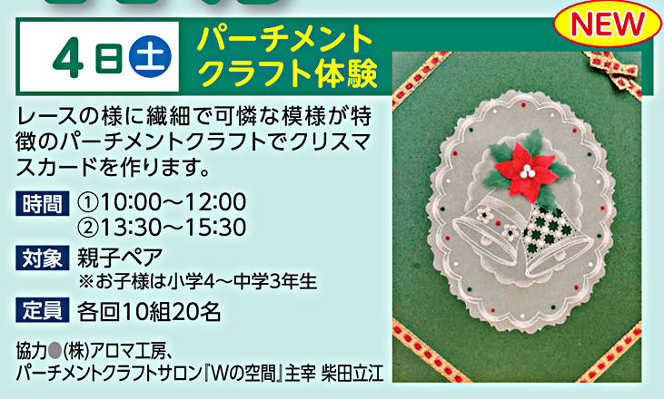 レースの様に繊細で可憐な模様が特徴のパーチメントクラフトでクリスマスカードを作ります。