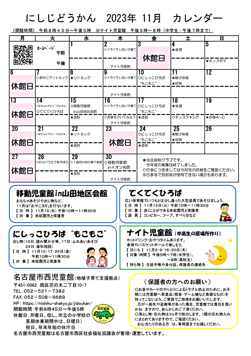 【申込】①または②どちらかの申し込み 11月1日午前10時から児童館窓口にて受付 10時30分からは電話申込も可