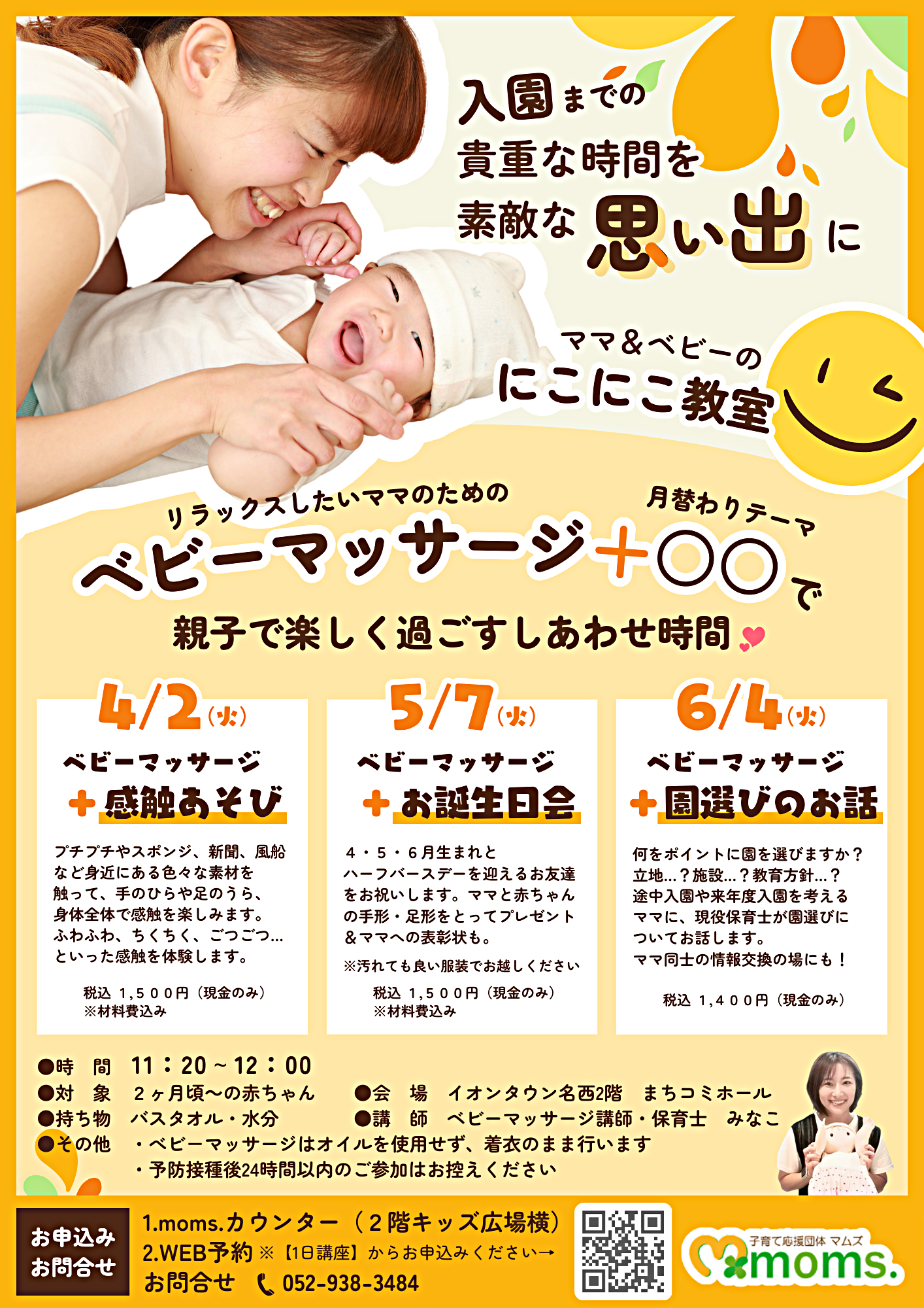 ■その他 ベビーマッサージはオイルを使用せず、着衣のまま行います。予防接種後24時間以内のご参加はお控えください。
