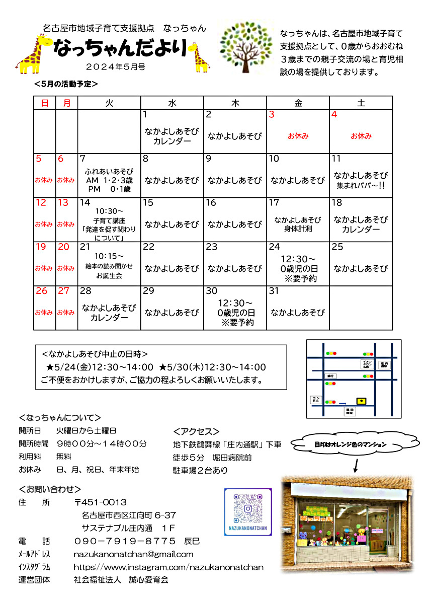 0歳からおおむね3歳までの親子交流の場と育児相談の場を提供しています。予約は不要です。