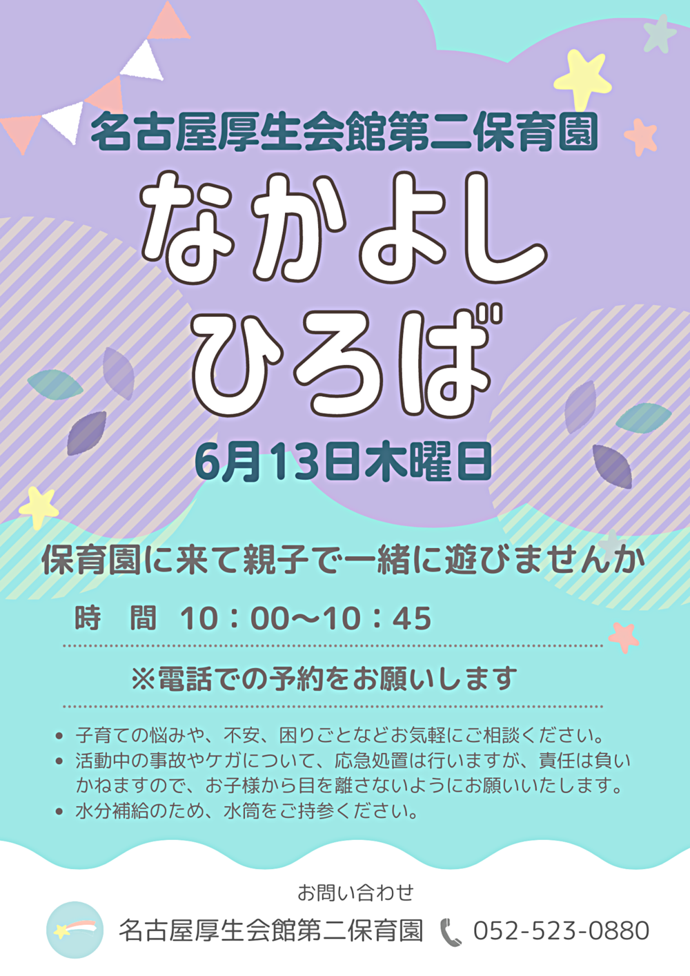 【申込】5月30日午前10時から児童館窓口にて受付 10時30分からは電話申込も可