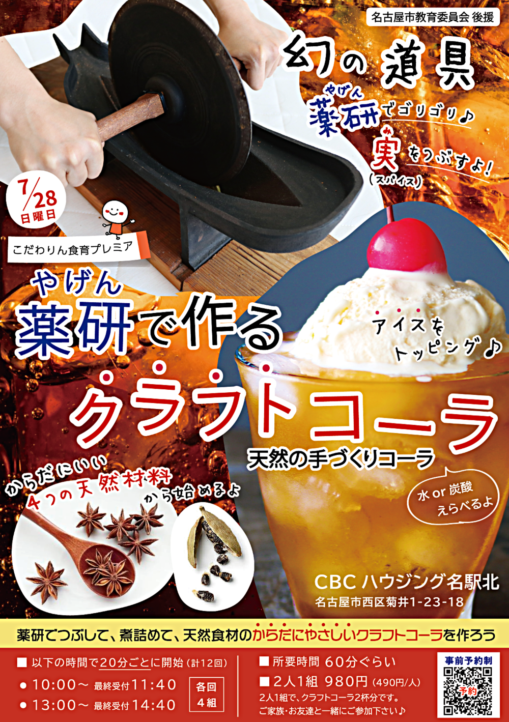 【事前予約制】食育イベント 薬研(やげん)で作るクラフトコーラ(手づくりのコーラ)