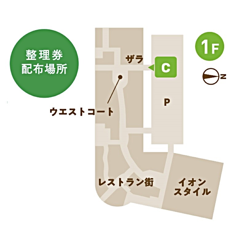 各日9:30より専門店1F「C入口」横にて整理券を配布いたします。