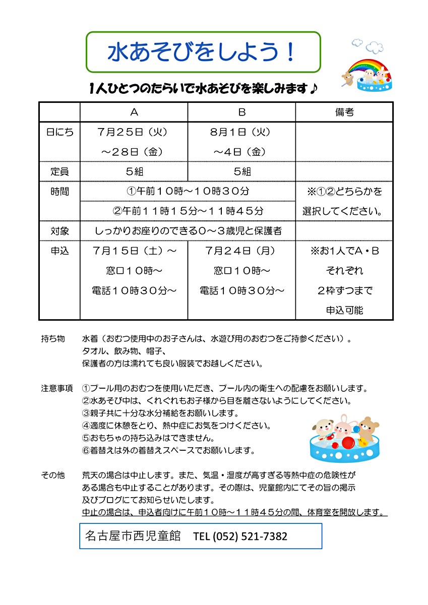 申込:7月12日午前10時から児童館窓口にて受付。10時30分からは電話申込も可