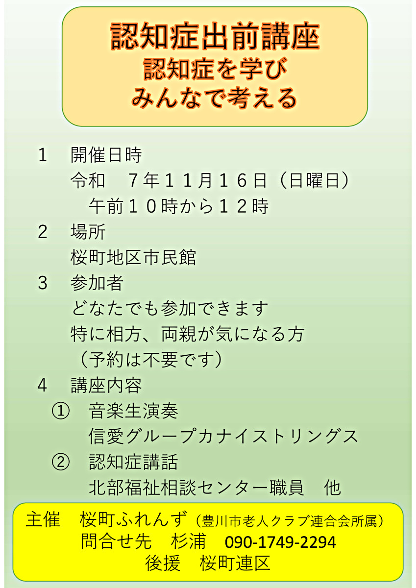 認知症に対する正しい知識を持てたらいいなと思います地区にこだわらずどなたでも参加できます