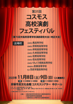 大阪府高等学校演劇研究大会の地区大会を兼ねた、コスモス高校演劇フェスティバルも今年で31回目を迎えました。今年も8日(土)9日(日)2日にわたって行います。地域の高校演劇部員たちが全力で挑む舞台をぜひご覧ください。