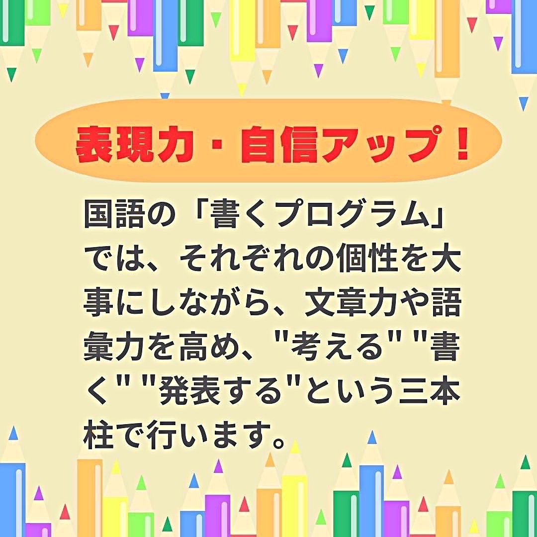 ⭐︎国語の時間では「書くプログラム」で、文章力、語彙力を高め、"考える” "書く” "発表する“という三本柱で行います。