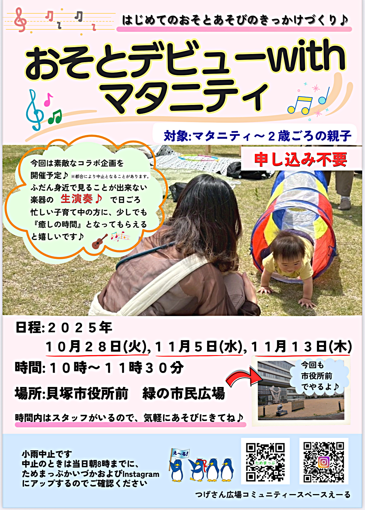 今回は楽器の生演奏も!ママやパパの癒しの時間になればと思っています(^^)