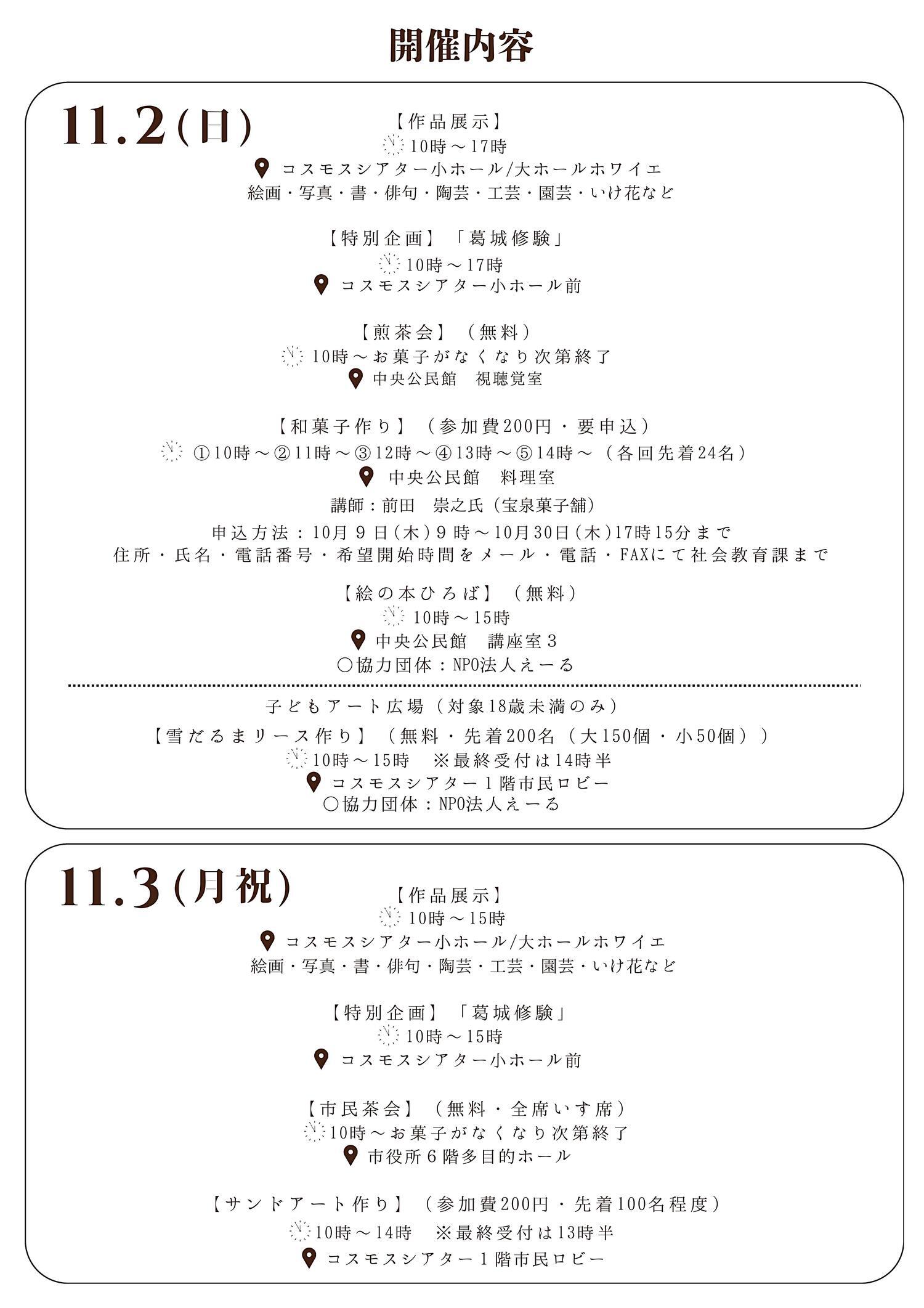 11月2日(日)・3日(月)に市民文化祭を開催します。