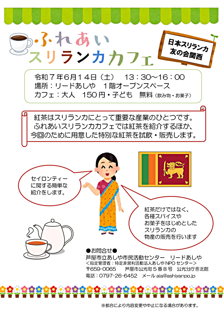 ふれあいスリランカカフェでは紅茶を紹介するほか、今回のために用意した紅茶を試飲・販売します。