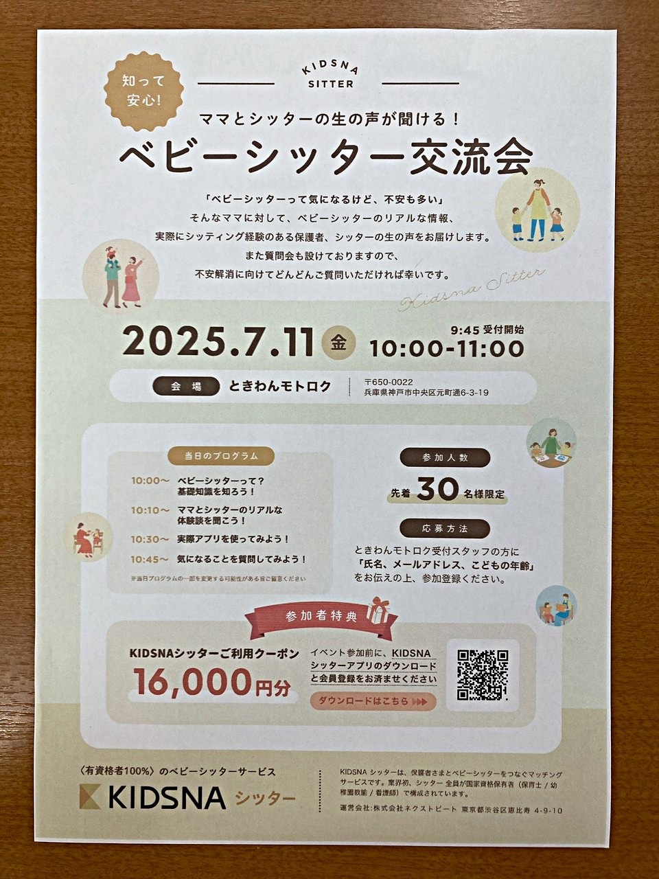 参加者特典でKIDSNA シッターご利用クーポン16000円分プレゼント!