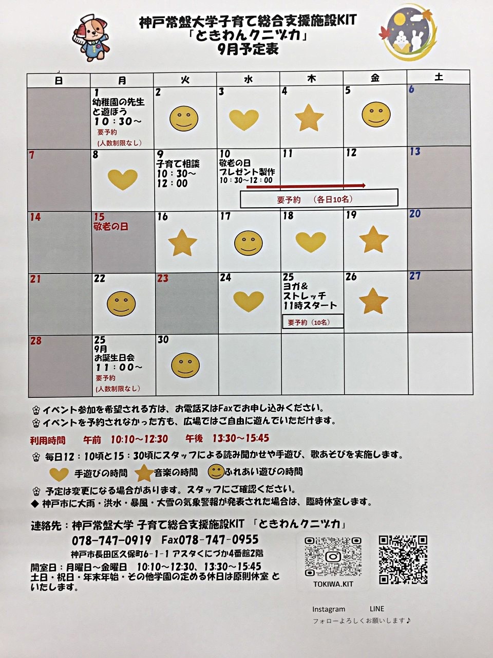 こんにちは☺︎ときわんクニヅカ 9月のカレンダーです🐰