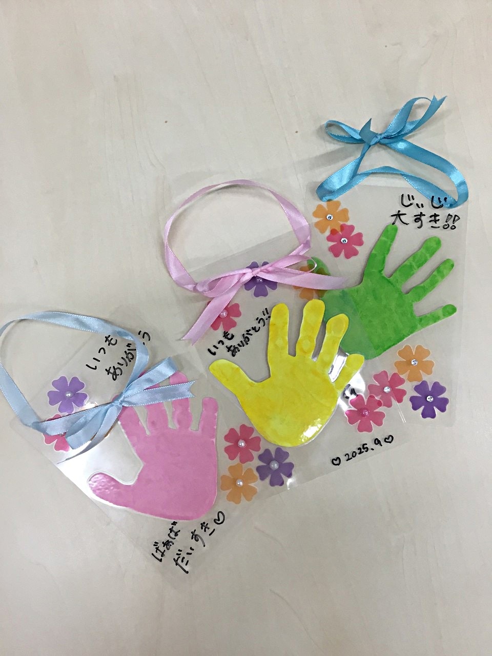 お子さまの手形にメッセージを添えて素敵なプレゼントを作りましょう。