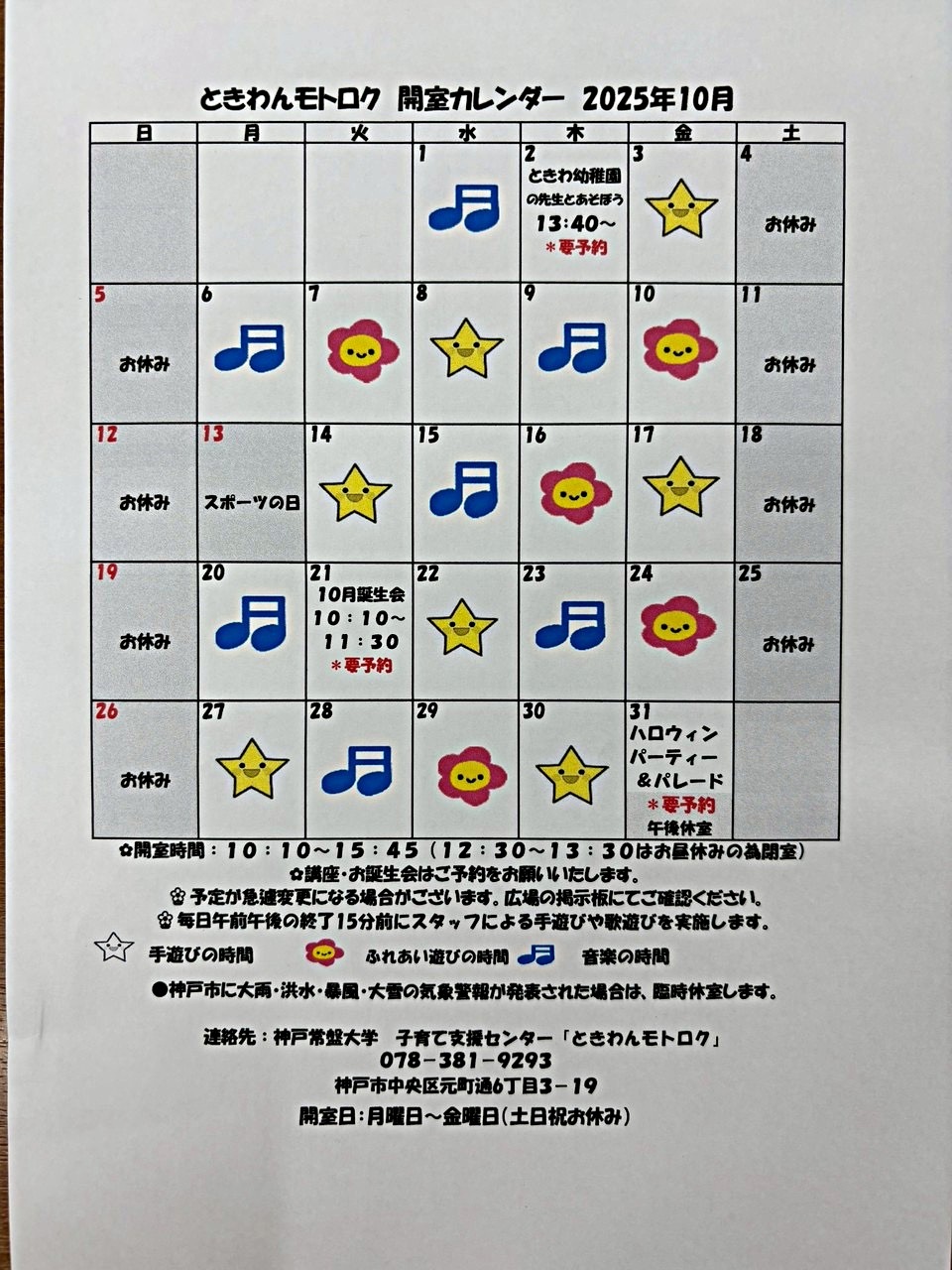 ☆15日22日29日は神戸常盤大学学生と一緒に遊べます。ぜひお越しください^ ^