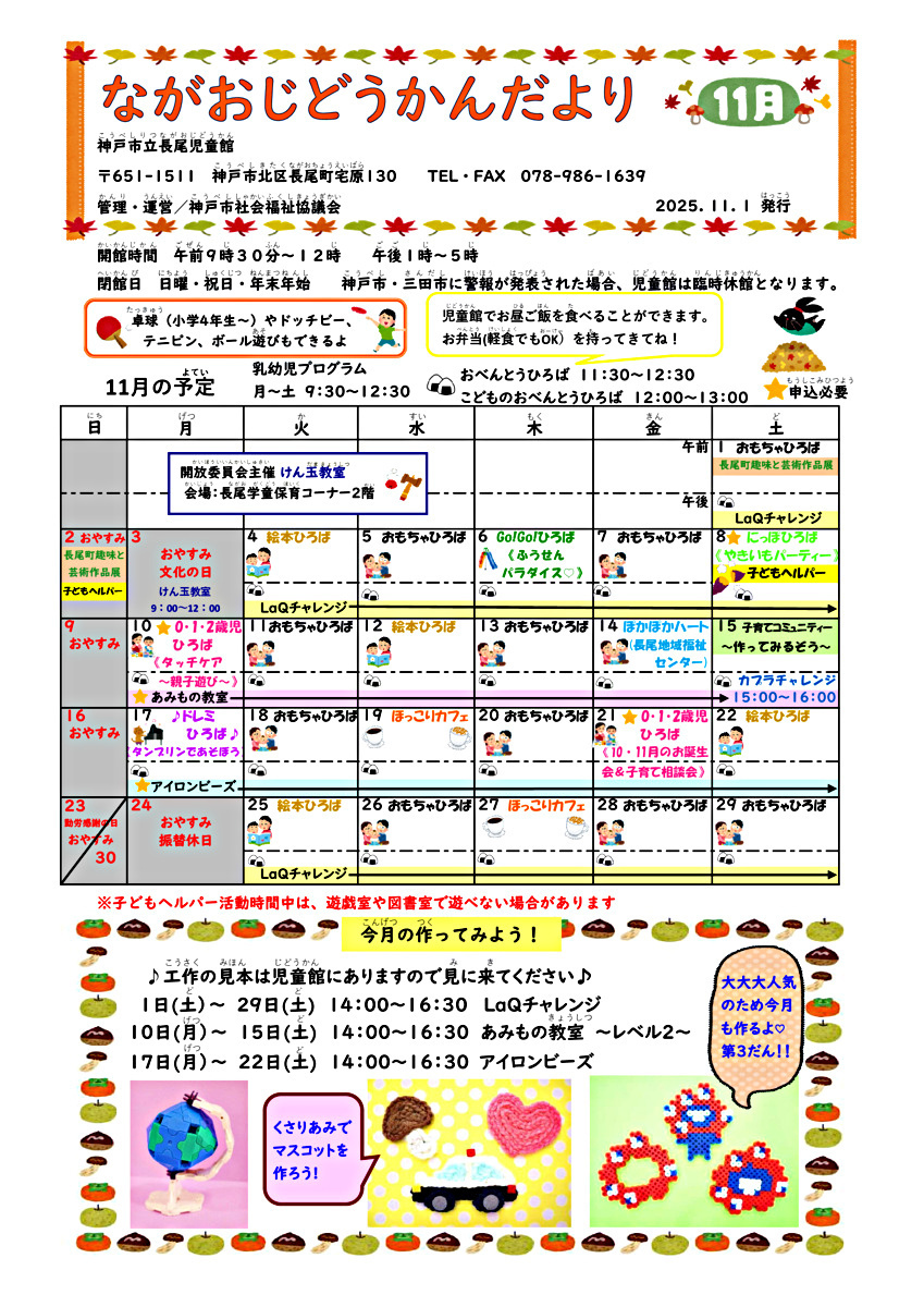 【長尾児童館だより】乳幼児子育てプログラム・行事のご案内