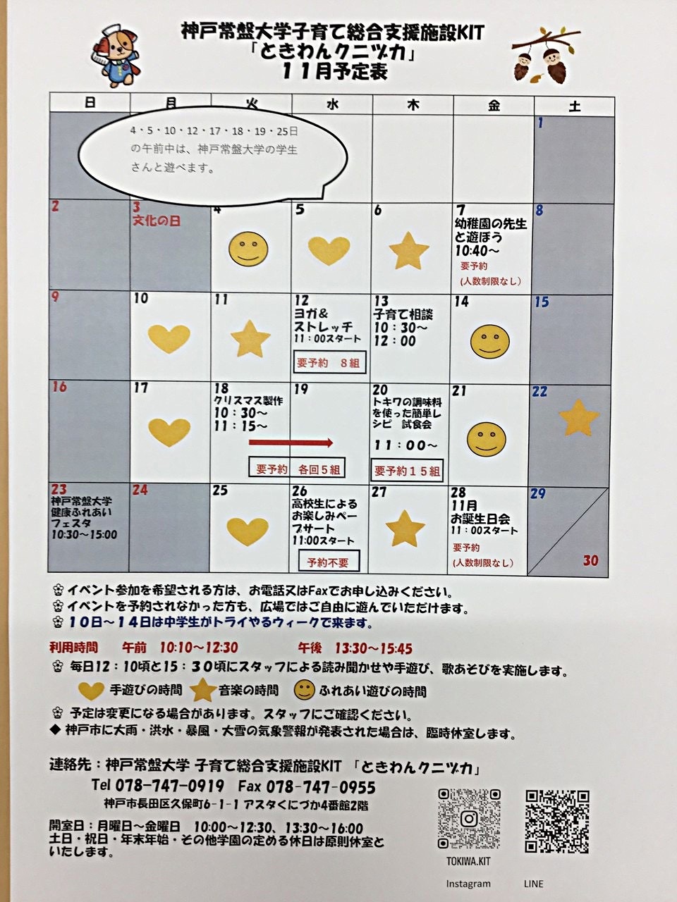 こんにちは☺︎ときわんクニヅカ 11月のカレンダーです🍂