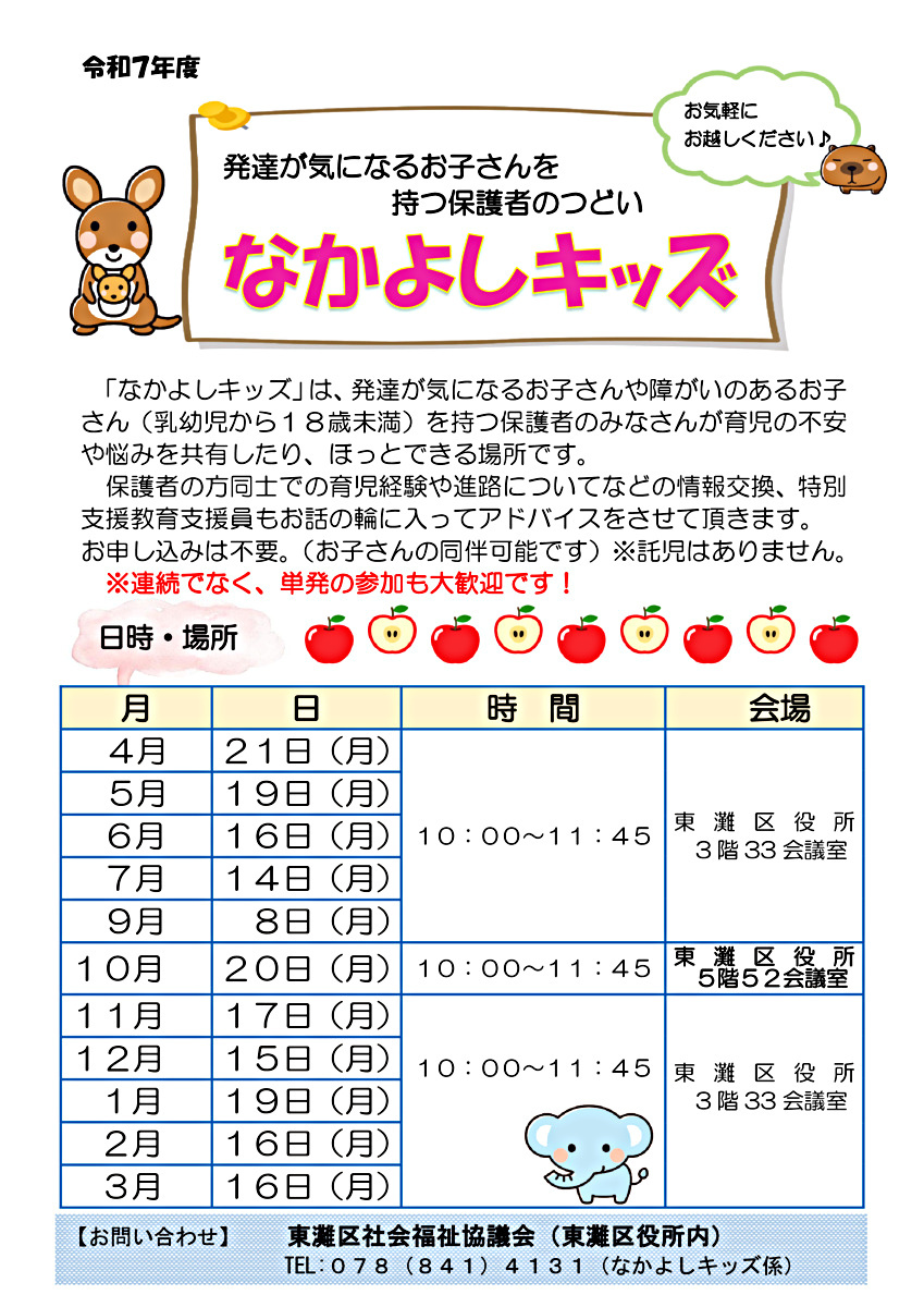 発達が気になるお子さんや障がいのあるお子さんを持つ保護者のみなさんが育児の不安や悩みを共有したり、ほっとできる場所です。特別支援教育支援員からのアドバイスもあります。