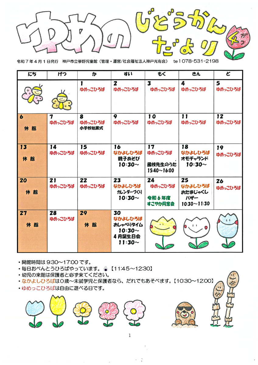 4月が始まりました!新年度は大人も子どももワクワクやドキドキがいっぱいだと思います。ほっと一息つきに児童館に遊びにきてくださいね!
