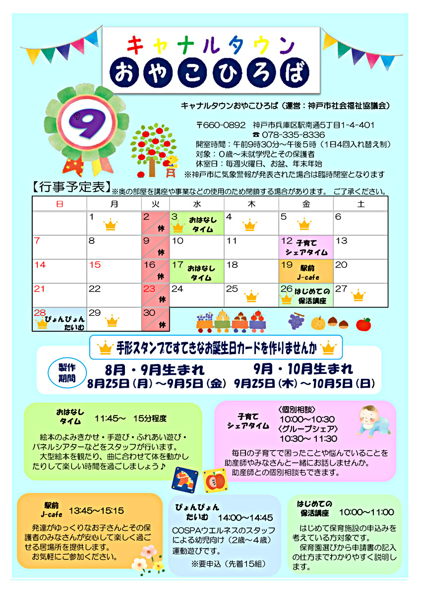 ※利用時間 ①9:30~11:00 ②11:15~12:45 ③13:45~15:15 ④15:30~17:00