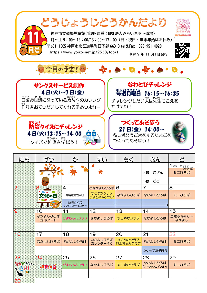 11月 道場児童館 なかよしひろばイベント案内