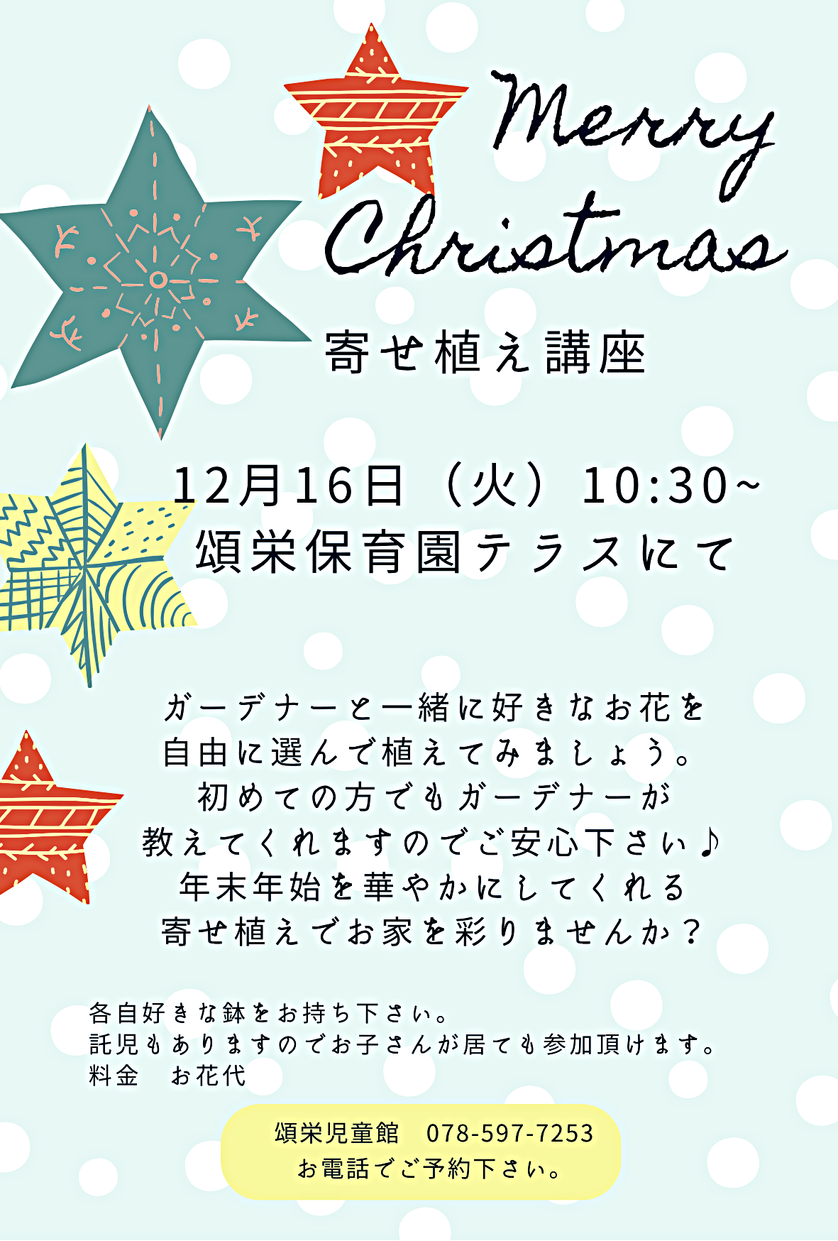 ガーデナーと一緒に好きなお花を自由に選んで植えてみましょう。初めての方でもガーデナーが教えてくれますのでご安心ください。年末年始を華やかにしてくれる寄せ植えで、お家をお家を彩りませんか?