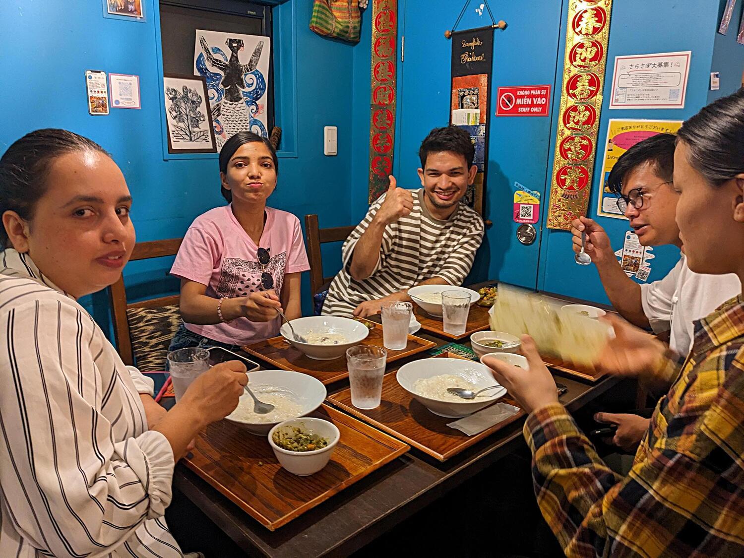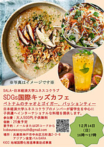 日本経済大学ユネスコクラブの留学生たちが、地域の皆様に母国の料理をふるまいながら、交流を深めるイベントです。今回の料理は、ベトナムのおかゆ「チャオ」、ベトナムのチキンサラダ「ゴイガー」と「パッションティー」です。