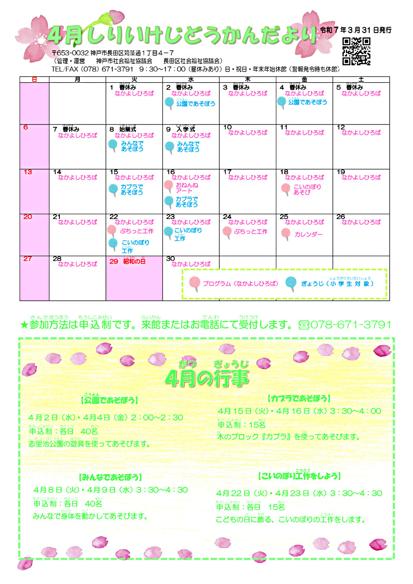 〒653-0032 兵庫県神戸市長田区苅藻通1丁目4−7 市立志里池児童館