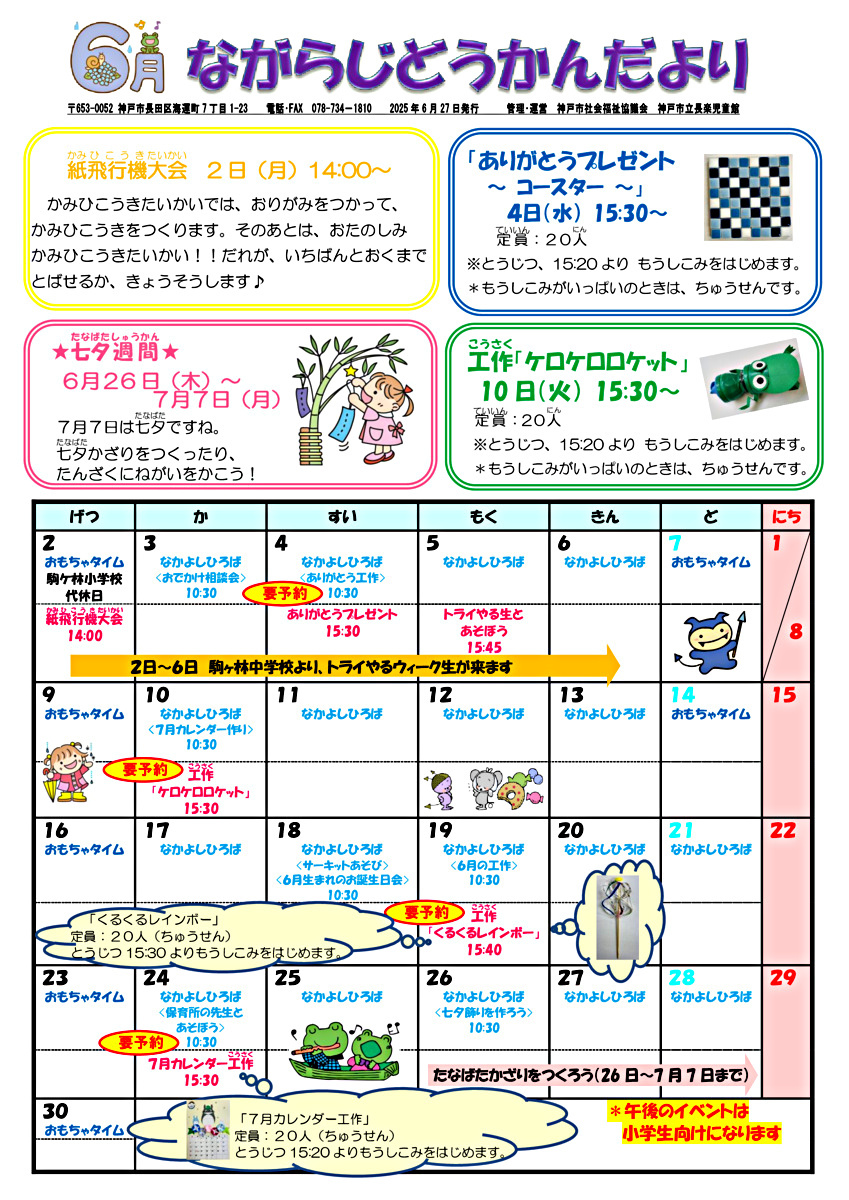 長楽児童館 なかよしひろばのお知らせ