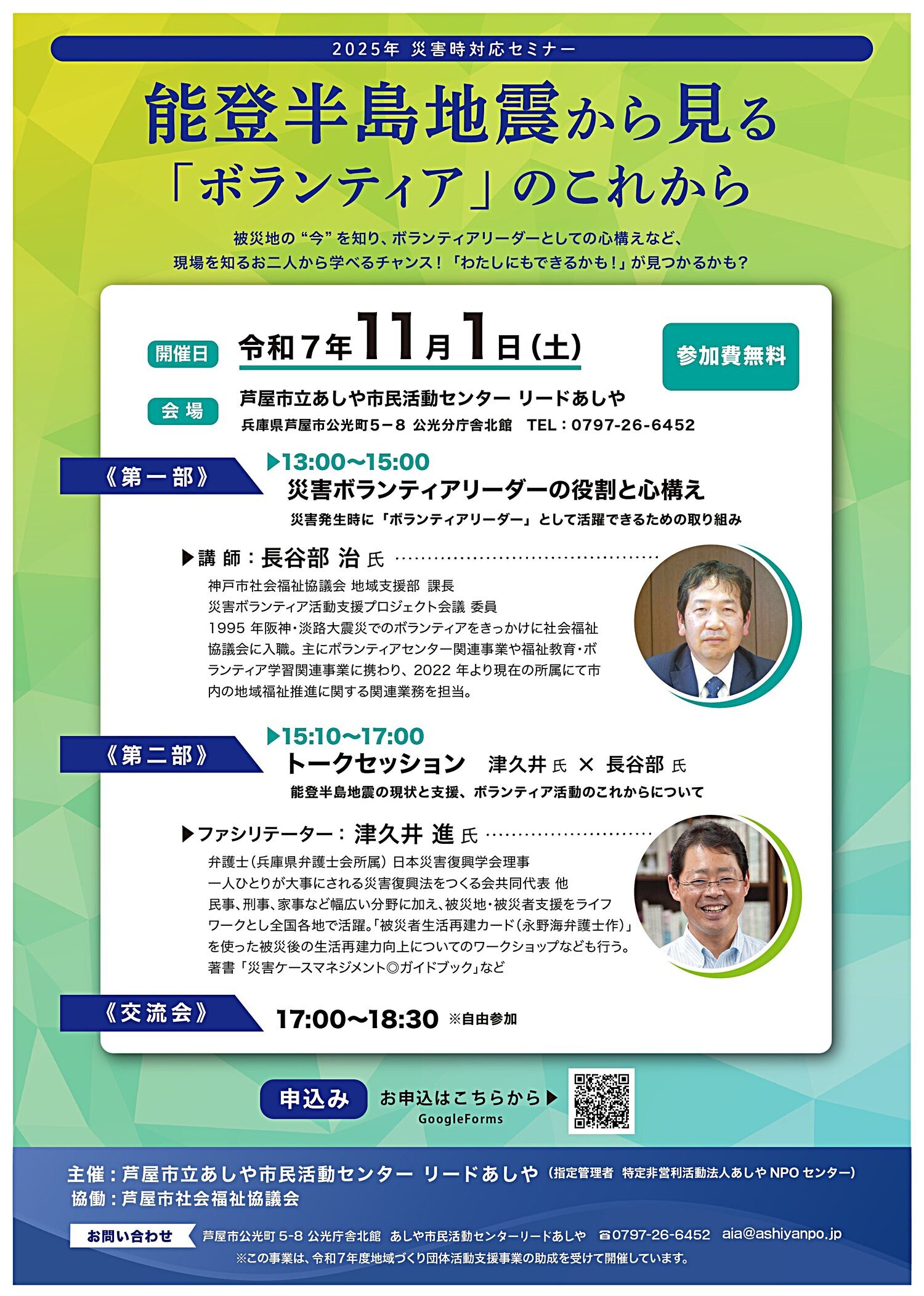 被災地の"今”を知り、ボランティアリーダーとしての心構えなど、現場を知るお二人から学べるチャンス!「わたしにもできるかも」が見つかるかも!