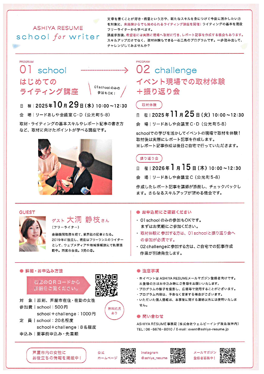 講座:はじめてのライティング講座→10月29日(水)