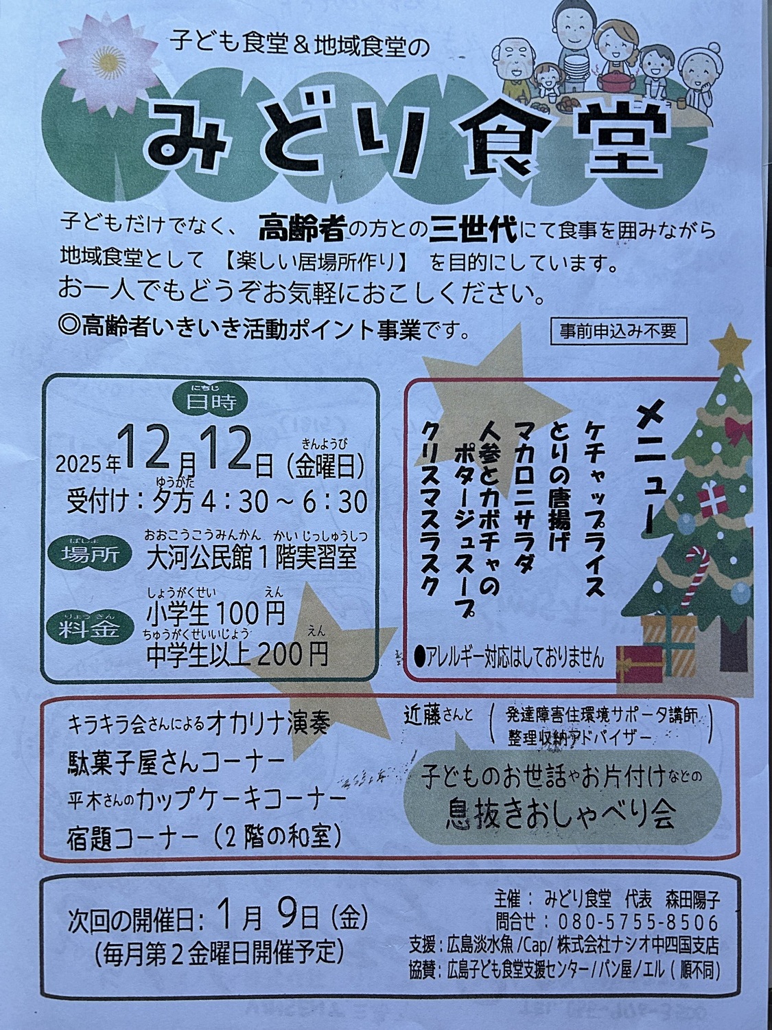 献立 : ケチャップライス、とりの唐揚げ、マカロニサラダ、人参とカボチャのポタージュスープ、クリスマスラスク