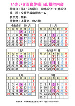 持参物:飲み物、上靴、いきいきポイント手帳