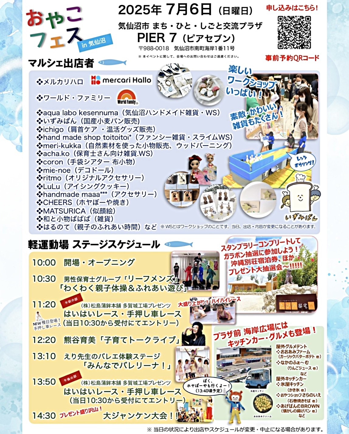 ■主催・共催…おやこフェス実行委員会、一般社団法人SC.FIELD、気仙沼地域開発(株)、仙台明るい社会づくり運動