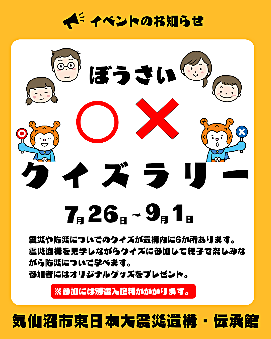 内容:震災遺構内を見学しながら参加できるクイズです。参加者にはオリジナルグッズをプレゼント。