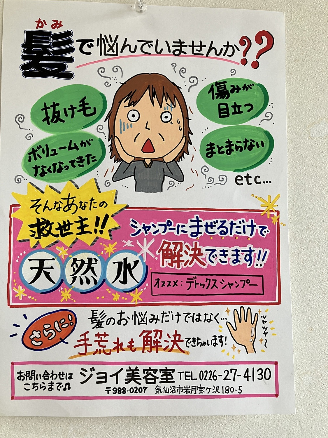 天然水をシャンプーに混ぜるだけで抜け毛が解決!手荒れも予防できます。詳しいことは当店までお問い合わせください。