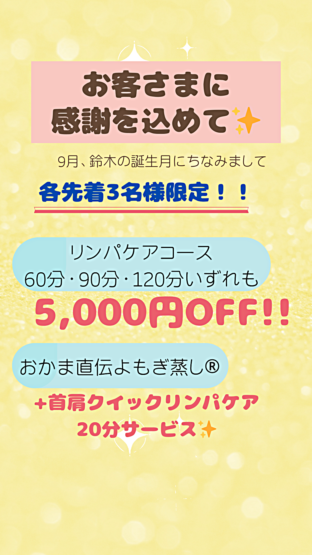 美味しいものたくさんの秋を元気に迎えるために、冷房で冷えたからだを温め、リンパで夏の間に溜まった老廃物を流して、秋モードにシフトしてまいりましょう!というわけで…