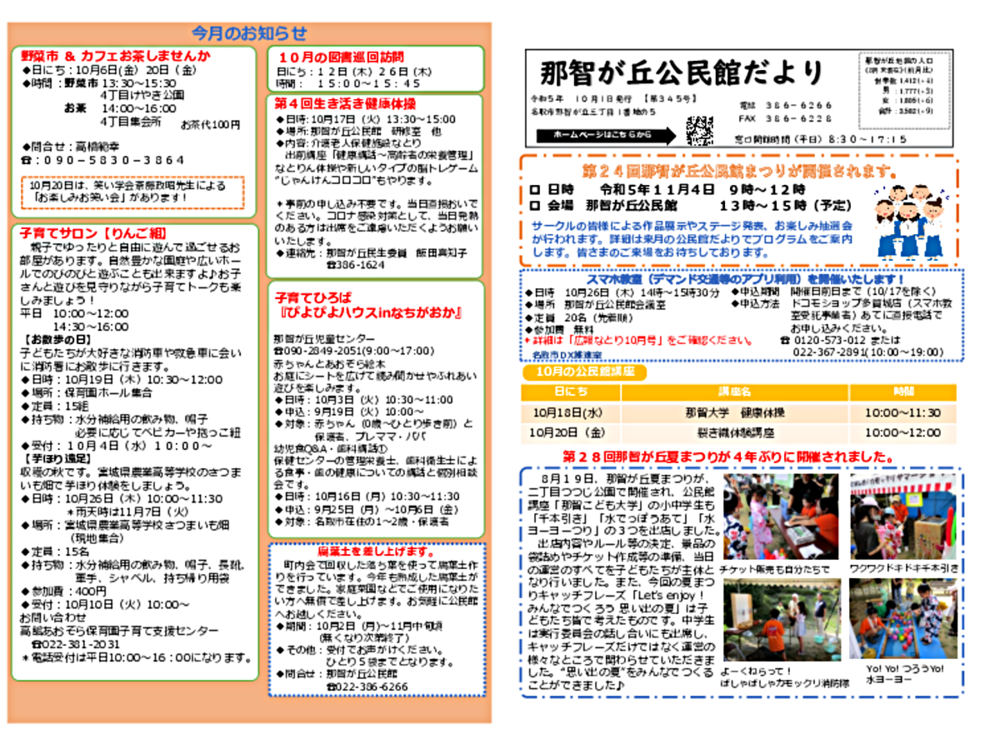 ★毎月1日・15日・末日にその月の公民館だよりを掲載しています。