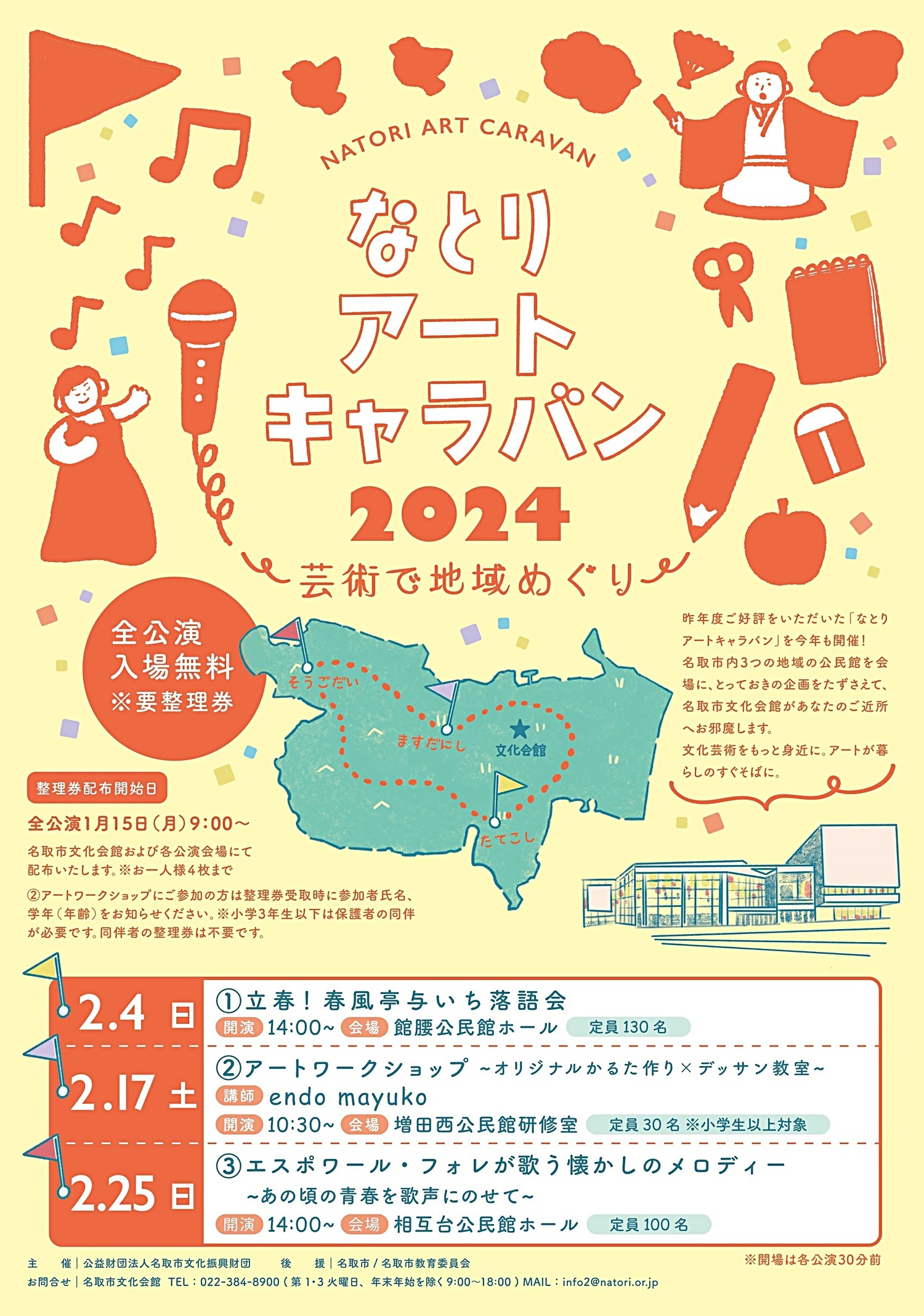 名取市文化会館 022-384-8900(第1・3火曜日を除く9:00~18:00)