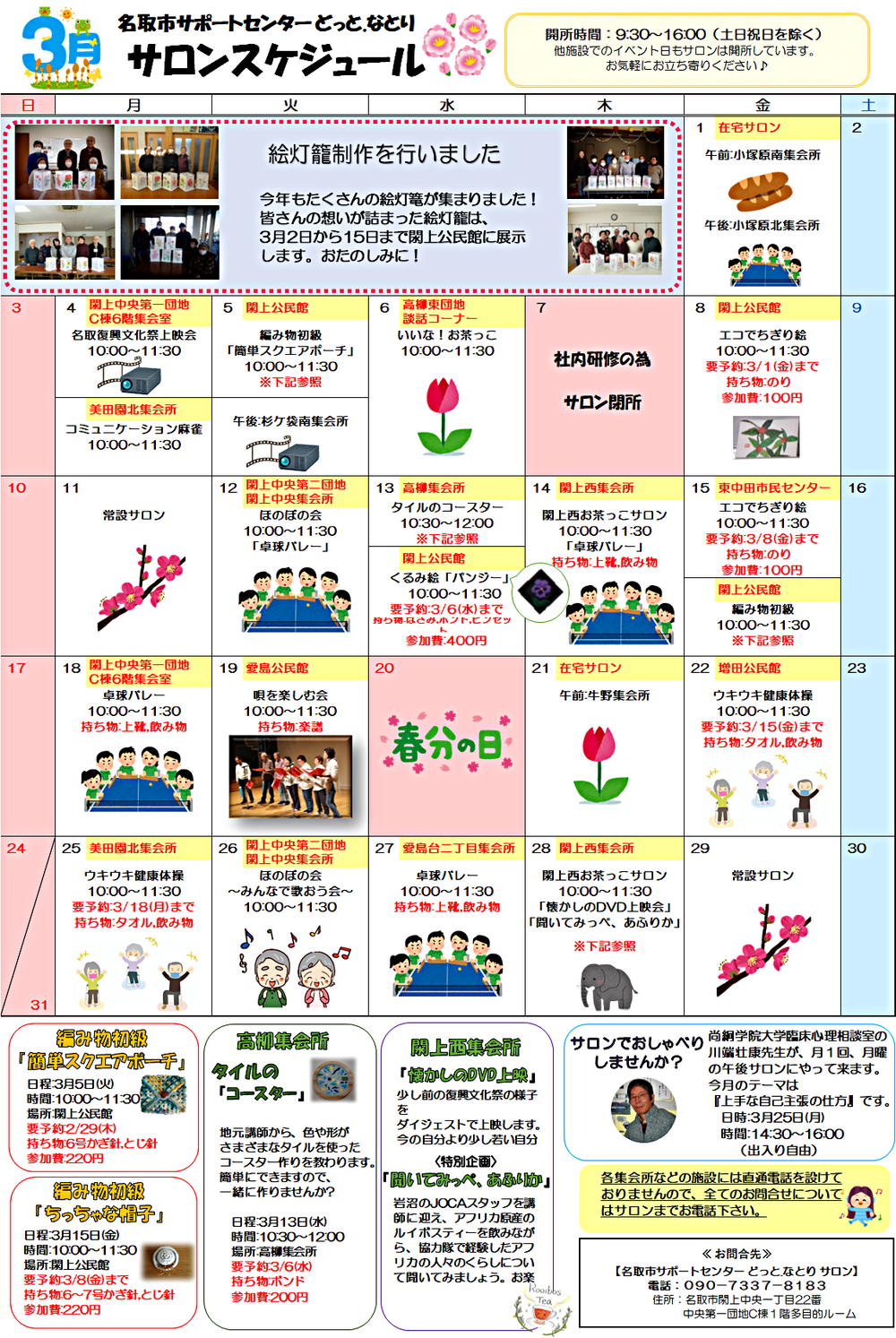 3月 どっと.なとり サロンスケジュール