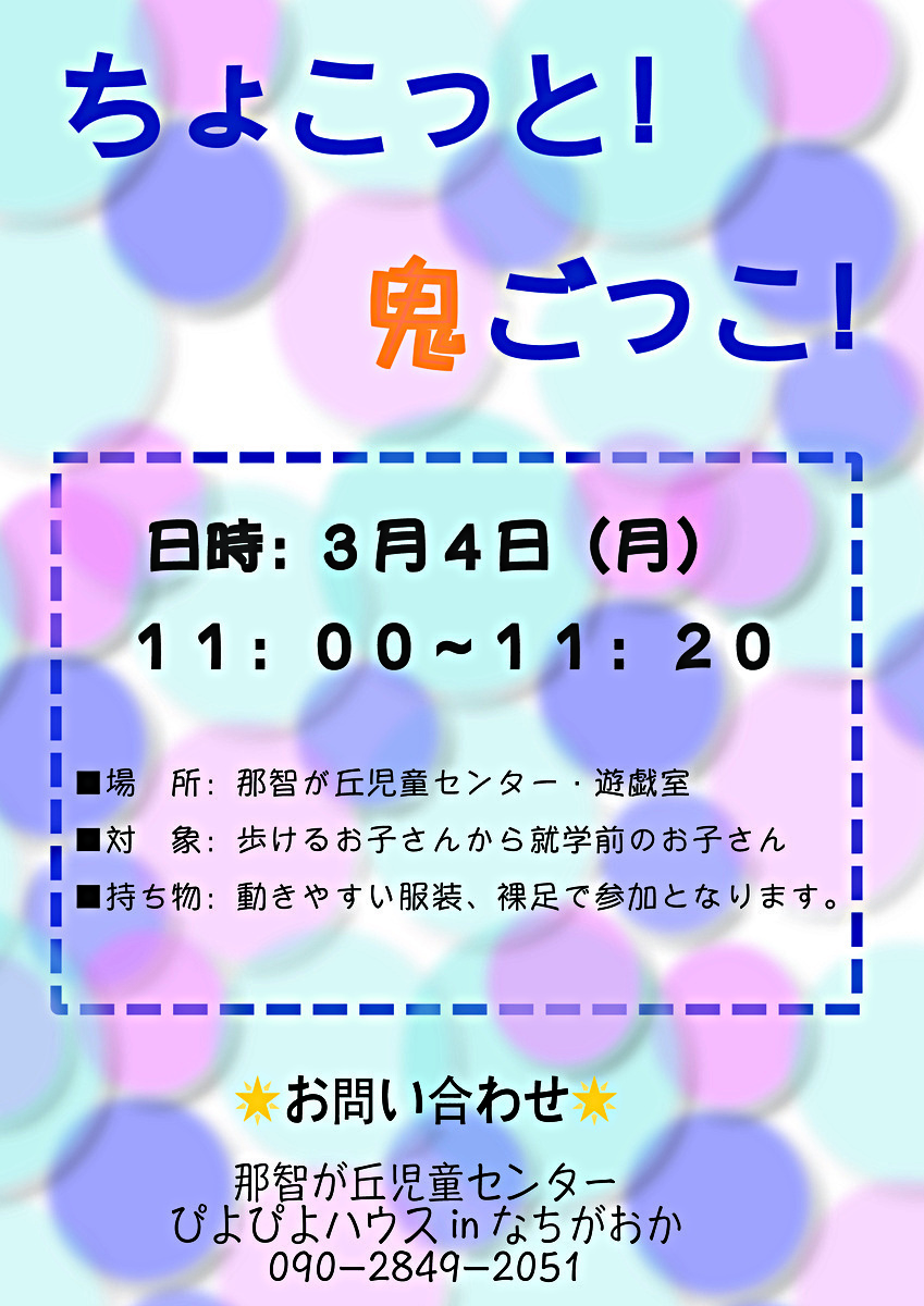 誰でも自由に遊べる遊び場!子どもの居場所〇〇(まるまる)の2月-3月の遊べる日です。