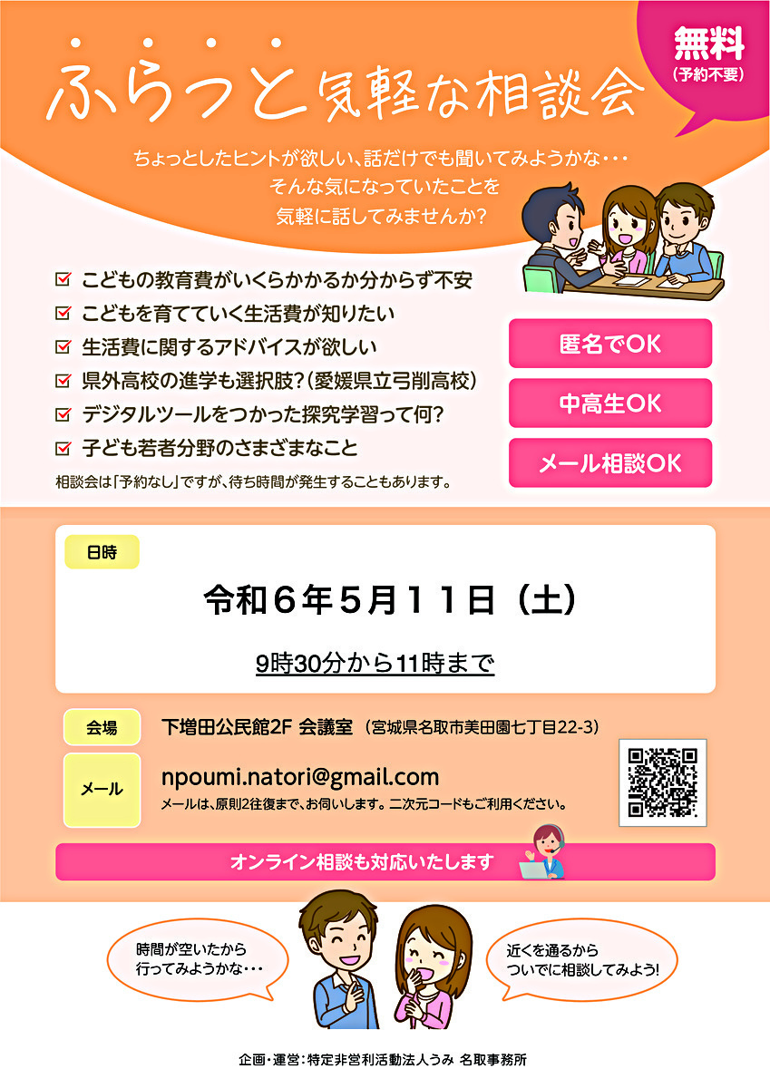令和6年5月11日(土) ふらっと気軽な相談会【NPO法人うみ名取事務所】