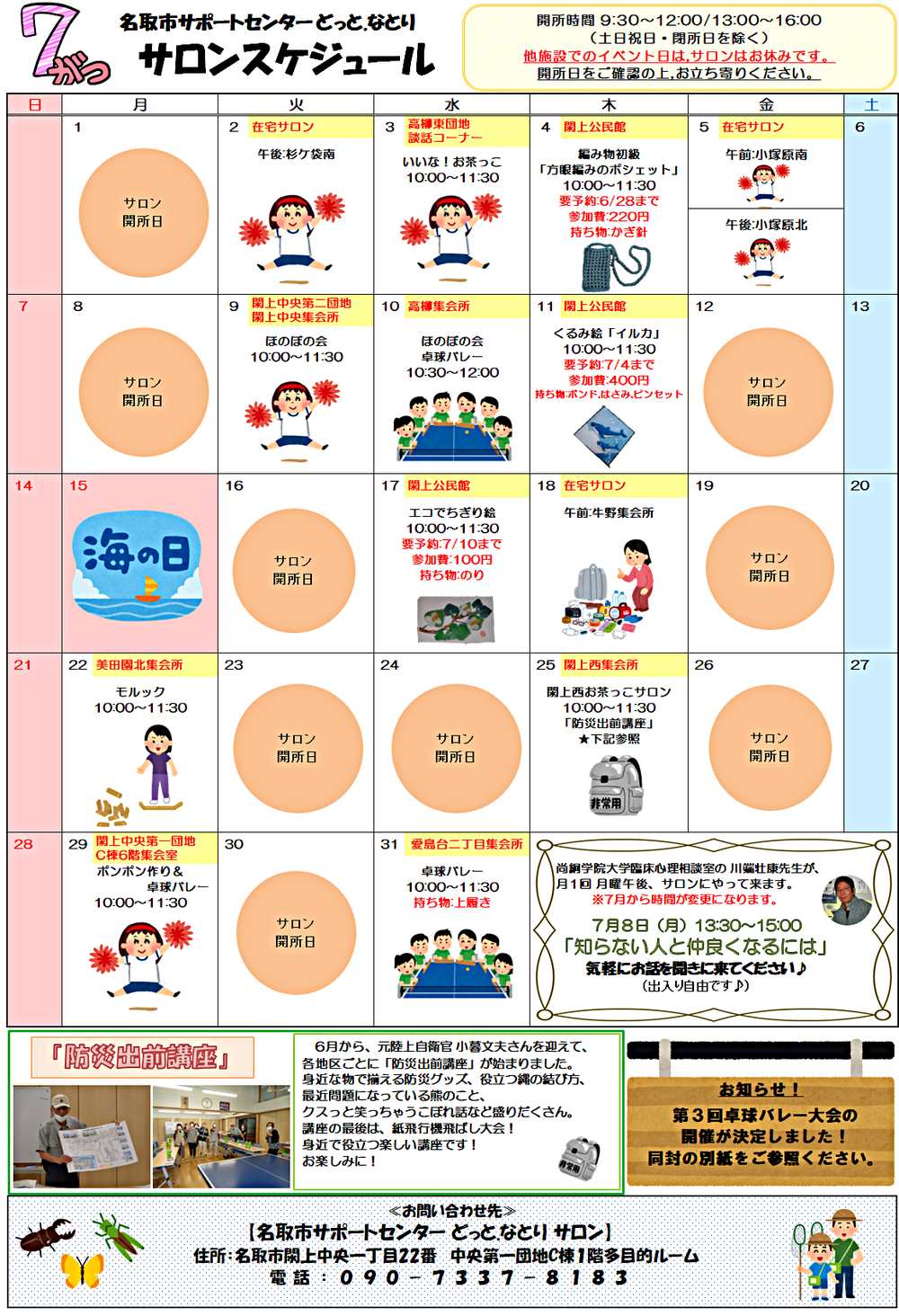 7月 どっと.なとり サロンスケジュール